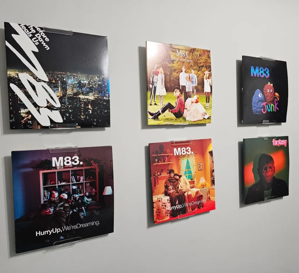 r/commandercody414 did this beautifully with their M83 collection, mounting six real vinyl sleeves directly on the wall using clear acrylic ledge holders.