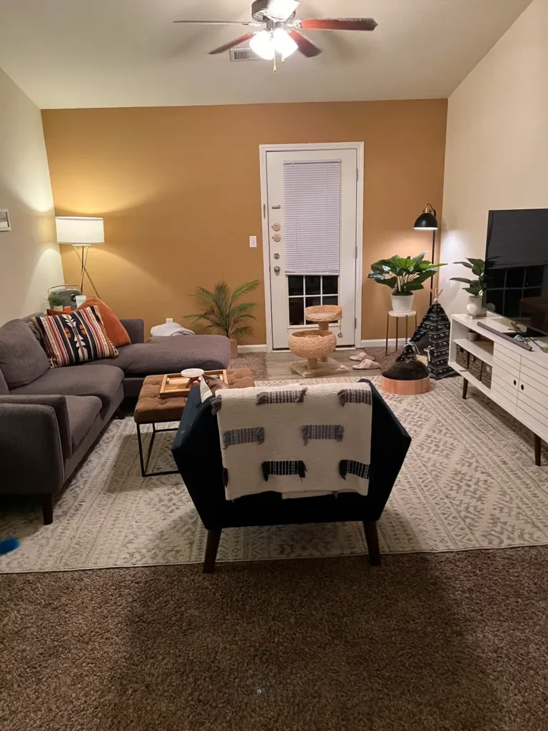 Warm Accent WallRentals where painting is allowedQuality paint + layered lampsEasy