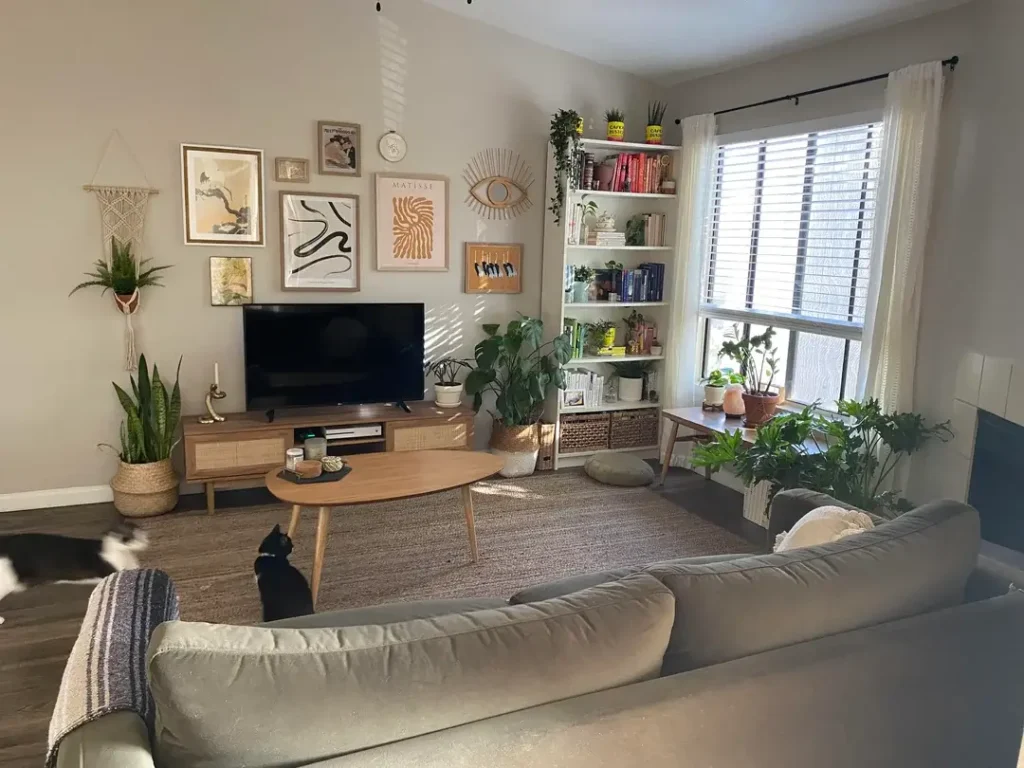 1. The Boho-Eclectic Living Room: Gallery Walls, Plants, and Mid-Century Wood