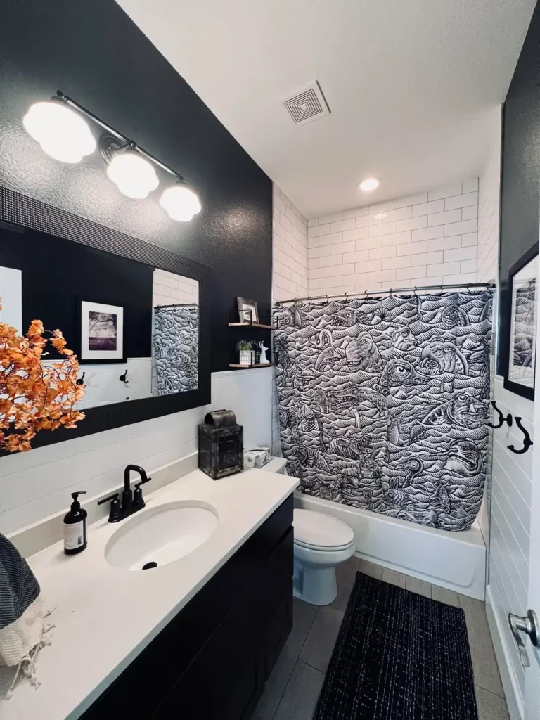 The contrast here does exactly what good black and white bathroom ideas should do it creates drama without requiring a complete gut renovation.