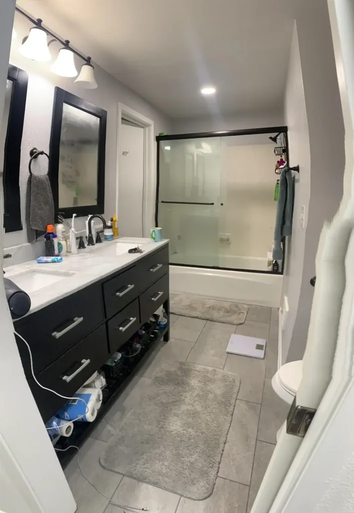 r/anklescarves shows a bathroom that’s honest about being a daily-use space rather than a showroom.