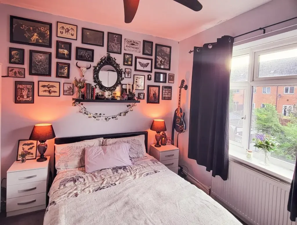 The examples I’ve gathered show real bedrooms where people made deliberate choices about their wall decor bedroom ideas. These aren’t staged magazine shots. They’re spaces where someone decided what mattered to them and built around that decision.