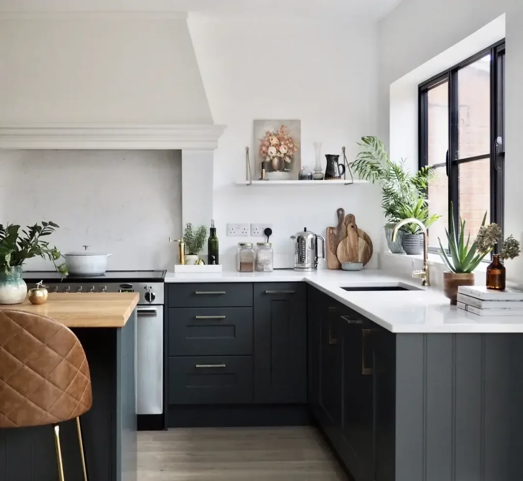 Sometimes you don’t need pure black to get the effect you’re after. This kitchen uses a deep charcoal that feels softer but still makes a statement.