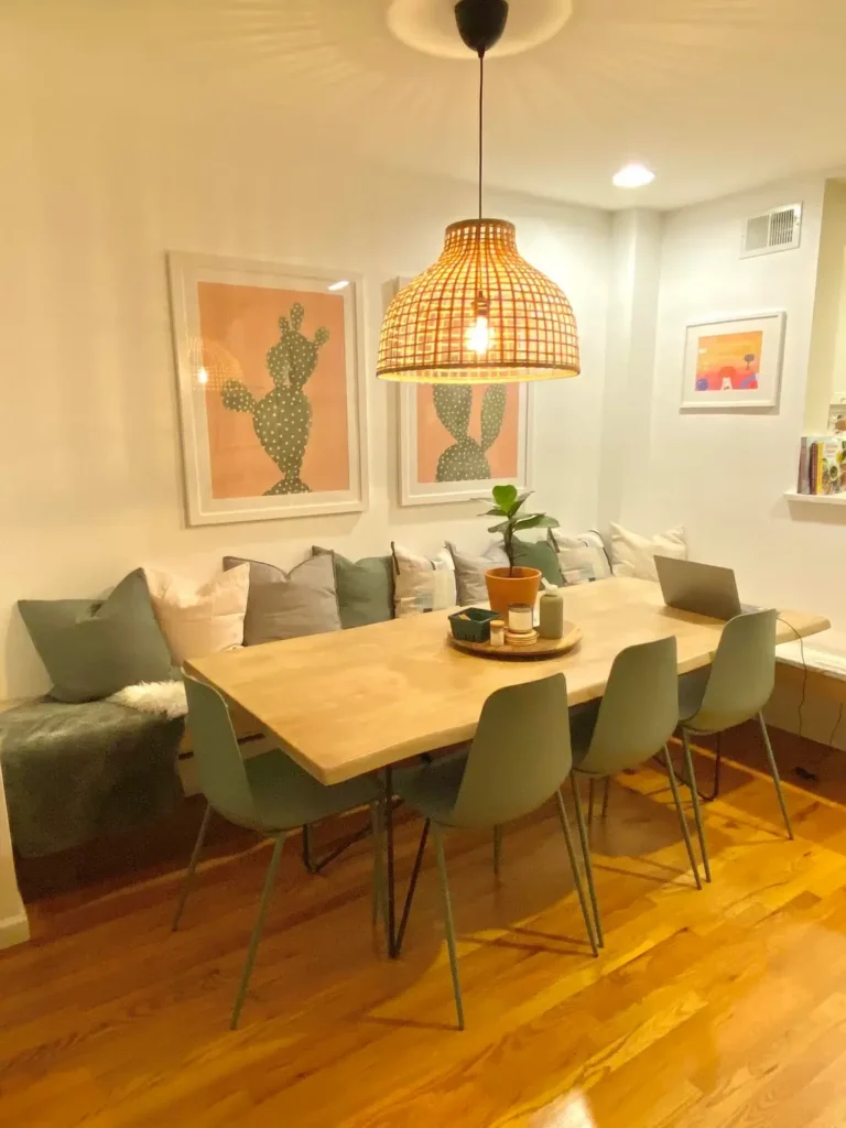 | Cozy Nook | Bench seating, rattan pendants, dried botanicals | Easy | Small dining areas |