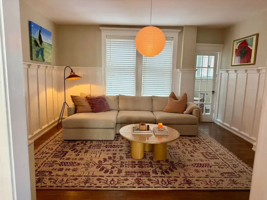 A coffee table can function as a visual pause. Don’t underestimate how powerful “almost nothing” can be.