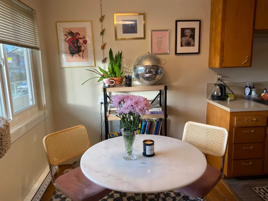 Dining areas in first apartments usually get zero love. A table, some chairs, done. This corner from r/wildflowerchild_mc proves those square feet deserve way more attention.
