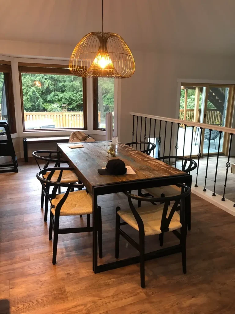 The Reclaimed Wood Table with Wishbone Chairs Under a Woven Pendant