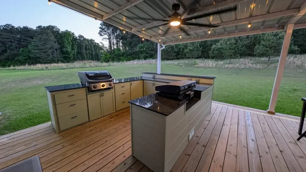 You’ve probably spent a small fortune on your indoor kitchen. Nice countertops, quality appliances, maybe even under-cabinet lighting. And then you step outside to… a wobbly grill cart sitting on bare concrete next to a plastic folding table that’s been “temporary” for three years.