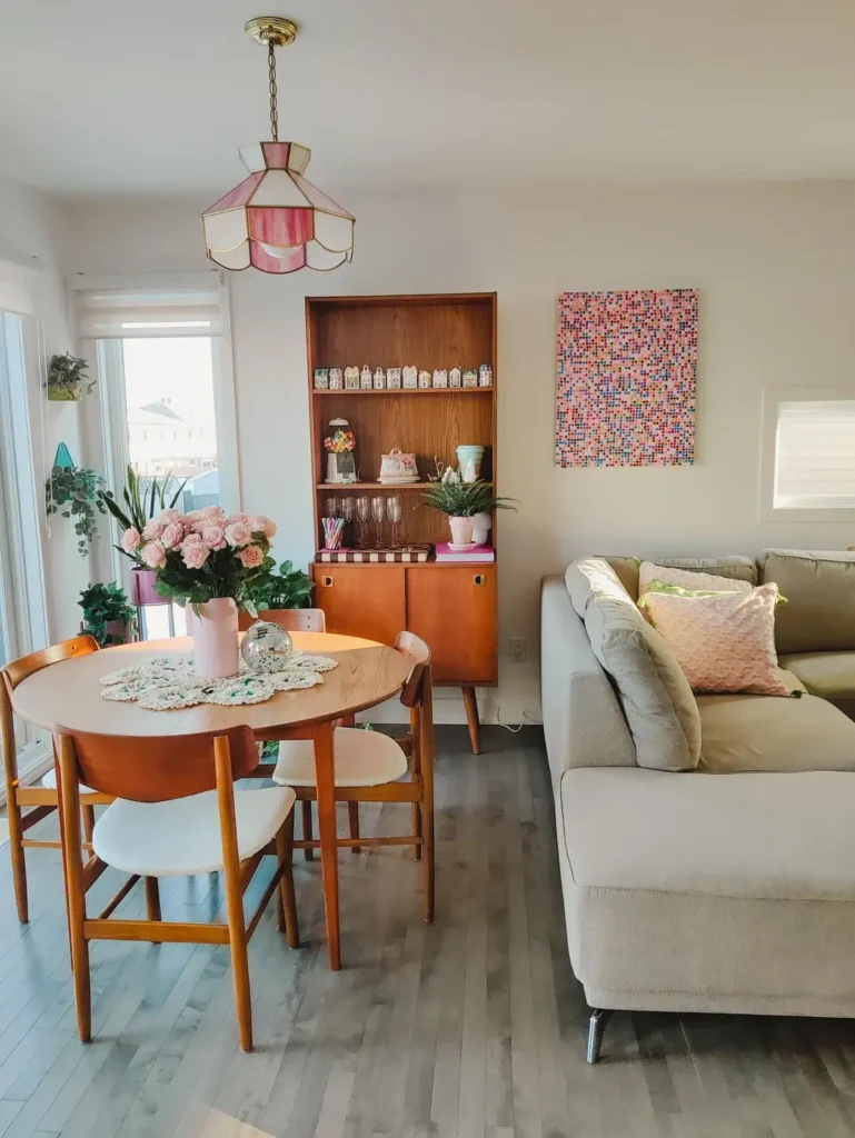 Not everyone has a dedicated dining room, and this setup is proof that you don’t need one to create a charming, livable dining area.
