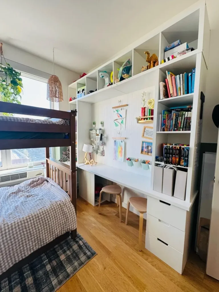 What I appreciate is the sheer amount of storage this provides. Shared rooms generate twice the stuff, and this system handles it without making the room feel like a warehouse. The desk area means homework and creative projects have a dedicated spot, reducing conflict over shared surfaces.