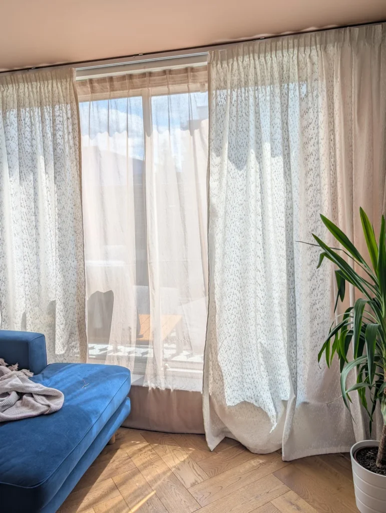 Go wider than you think. Curtains that only cover the window opening look like an afterthought. Sheers that extend well past the window frame on both sides make the window look bigger and the wall more intentional.