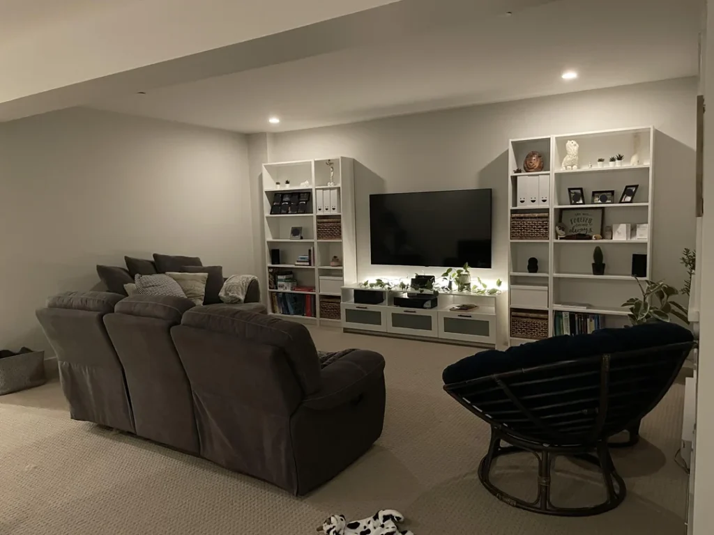 There’s something deeply satisfying about a living room where the TV doesn’t dominate — it just belongs. That’s exactly what r/PetesHa pulled off with this white built-in shelf setup flanking a large flat screen. Instead of letting the television be the room’s only focal point, the shelves on either side give the eye somewhere else to wander.