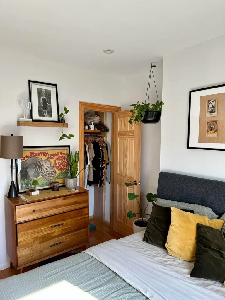 When you’re curating wall art for a small bedroom, commit to a frame style even if your art varies. This creates cohesion that lets you display personality without creating chaos.